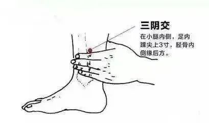 脚内踝上方四指(三阴交):睡前搓热此处,男女都适用。