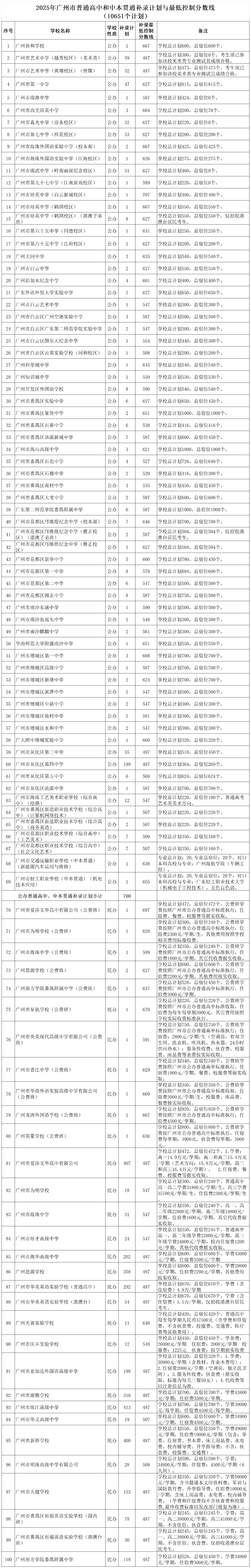 附件:1.2025年广州市普通高中和中本贯通补录计划与最低控制分数线