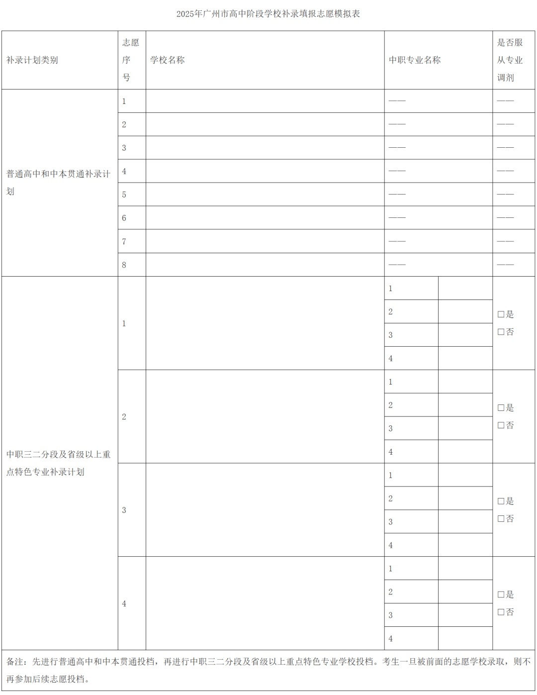 4.2025年广州市高中阶段学校补录填报志愿模拟表